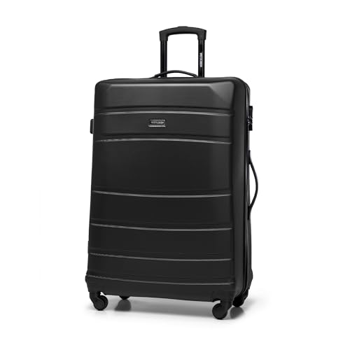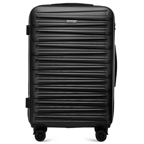 WITTCHEN GLOBE LINE Stor resväska Lätt resväska | Resväska | Hårt bagage ABS Nummerlås Teleskophandtag | 4 länkhjul Storlek L Svart SAS/Ryanair/Norwegian/Wizz Air/BRA/Sunclass Airliness