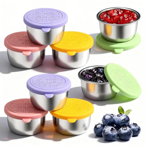 8 st salladsdressing med silikonlock, 50 ml liten såsbehållare i rostfritt stål, återanvändbar, för servering av sallader, dressingar och plastmat
