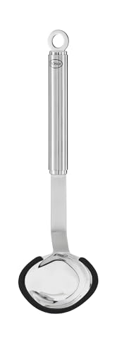 RÖSLE Såssked silikon, högkvalitativ sleffel med silikonkant och runt handtag, rostfritt stål 18/10, diskmaskinssäker, 27 x 8,5 x 5 cm