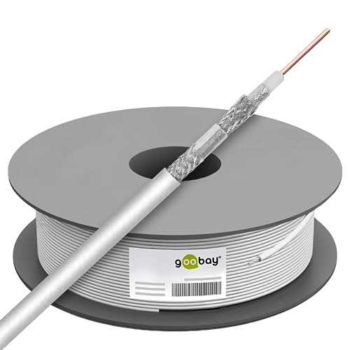 Goobay 27518 SAT koaxialkabel satellitkabel 120 dB/antennkabel 100 m/4 vägs skärmad kabel/kabel-TV – DVB-T – DVB-S TV-kabel/CCS koax SAT kabel/vit/100 m