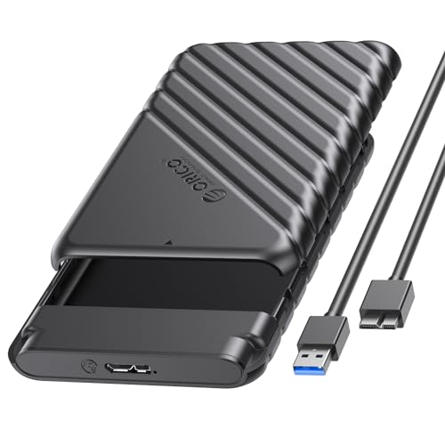 ORICO 2,5 tums hårddiskhölje med USB 3.0-kabel, verktygsfritt externt HDD-hölje för 2,5 tums SATA SSD och HDD i höjd 9,5 mm 7 mm, UASP-trim-stöd, svart (25PW1-U3)
