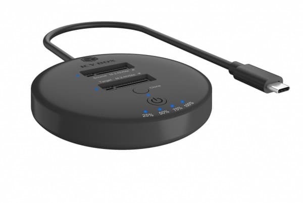 KALEA-INFORMATIQUE Docking Station för 2 x SATA 2.5- eller 3.5-enheter med USB3 5G-länk och CLONAGE-funktion. 3A extern strömförsörjning ingår.