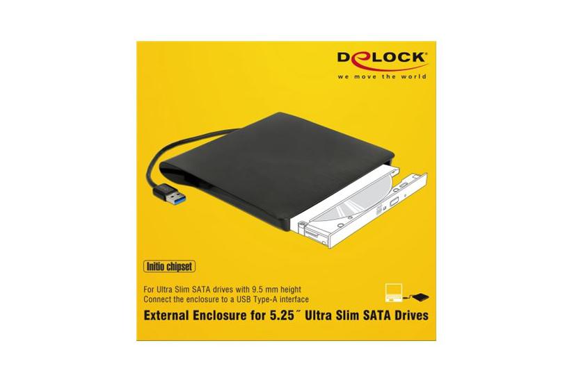 Delock 5.25" External Enclosure Slim Sata > Usb 3.0 - Förvaringslåda - Sata - Usb 3.2 (Gen 1) - Svart