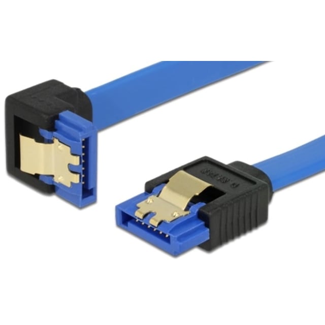 Delock - Sata-Kabel - Serial Ata 150/300/600 - Sata (R) Rak Till Sata (R) Vinklad Nedåt - 1 M - Sprintlåsning - Blå