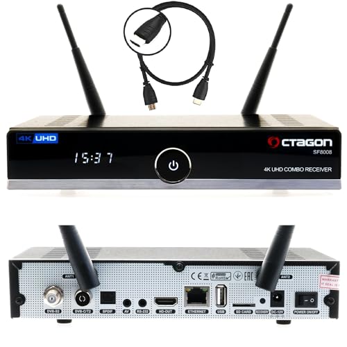 OCTAGON SF8008 UHD 4K kombinationsmottagare satellitkabel och DVB-T2-mottagare, E2 Linux och Define OS, DVB-S2X & T2C, med PVR-inspelningsfunktion, Gigabit LAN, kortläsare, satellit till IP,
