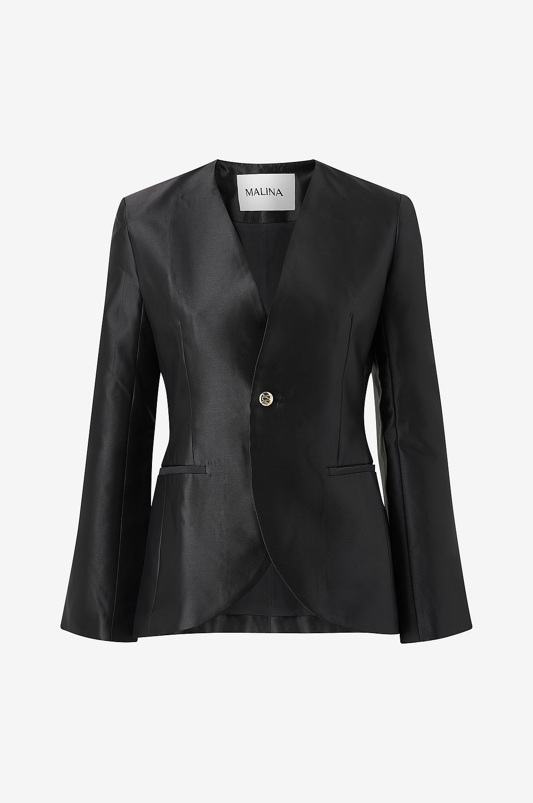By Malina - Blazer Nori Fitted Heavy Satin Blazer - Svart