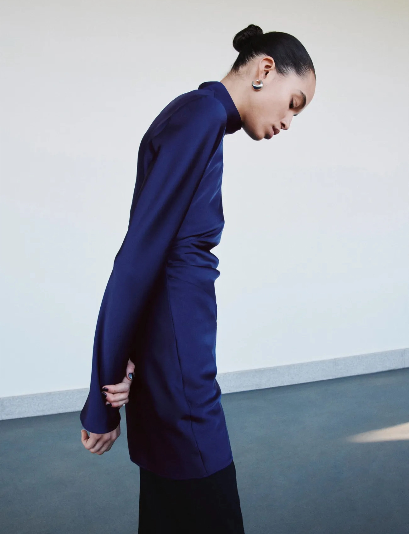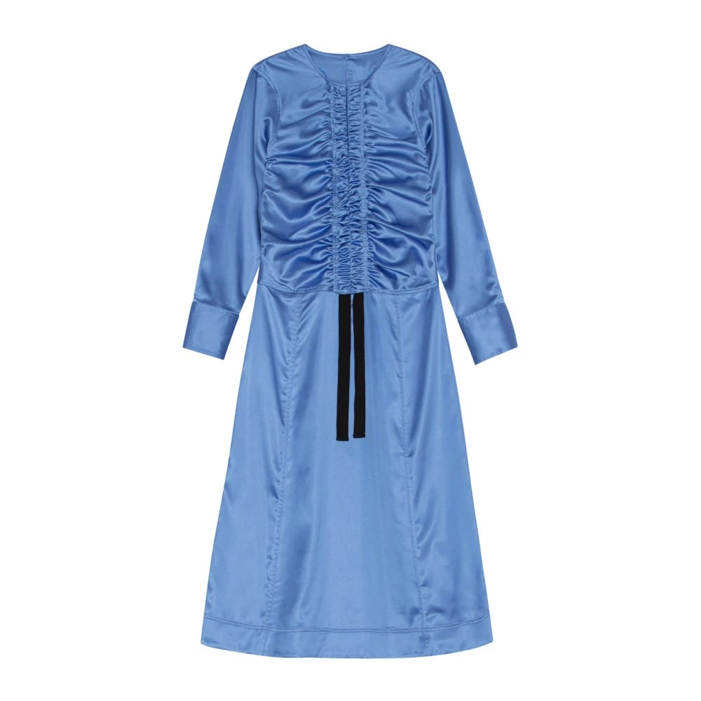 Mango Satin Dress With Pleat Detail - Blue - XL