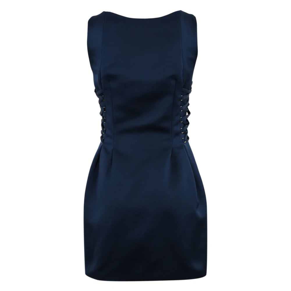 Elisabetta Franchi, Klänningar , Dam, L, Polyester, Blå Satin Klänning med Båthals