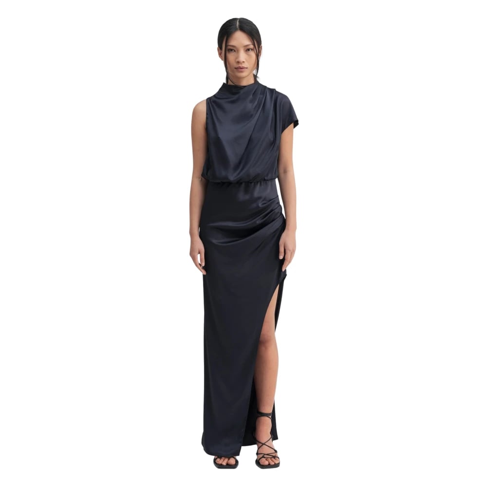 Malina Leah Cowl Neck Satin Maxi Dress - Blue - XS