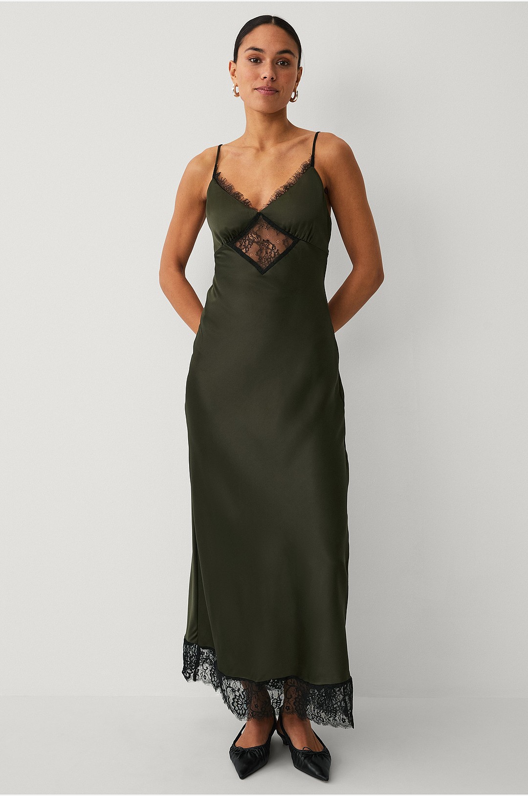 Gina Tricot - Maxiklänning Satin Lace - Grön