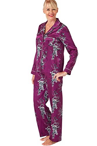 Reliwel Dampyjamas i Satin Pyjamas Dam Tvådelad Långärmad Pyjamasset Med Knappar Silke Mjuk V-ringning Öppen Framsida Och Byxor Sidoväskor, Lila, S