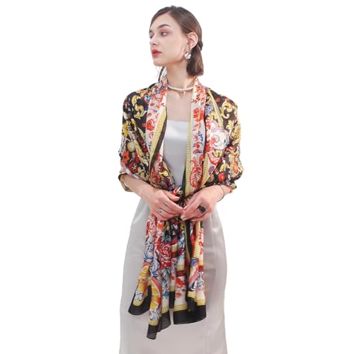 NUWEERIR Womens 100% Large Mulberry Silk Scarf Long Satin Scarf Fashion Lightweight Wraps