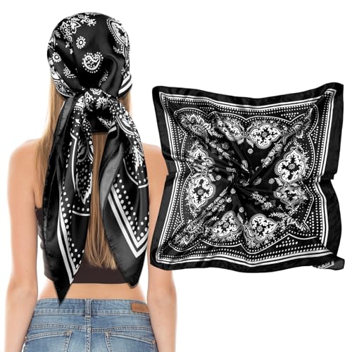 Giantree kvinnor fyrkantig satin huvudscarf, 89 cm stor mjuk fyrkantig scarf bandana, Svart, one size