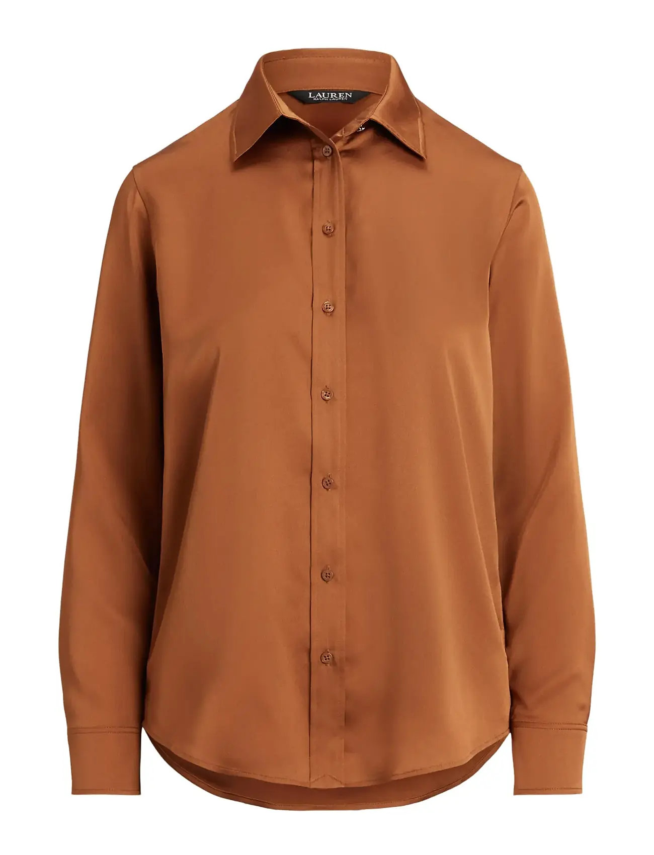 Lauren Ralph Lauren Satin Charmeuse Shirt Brun