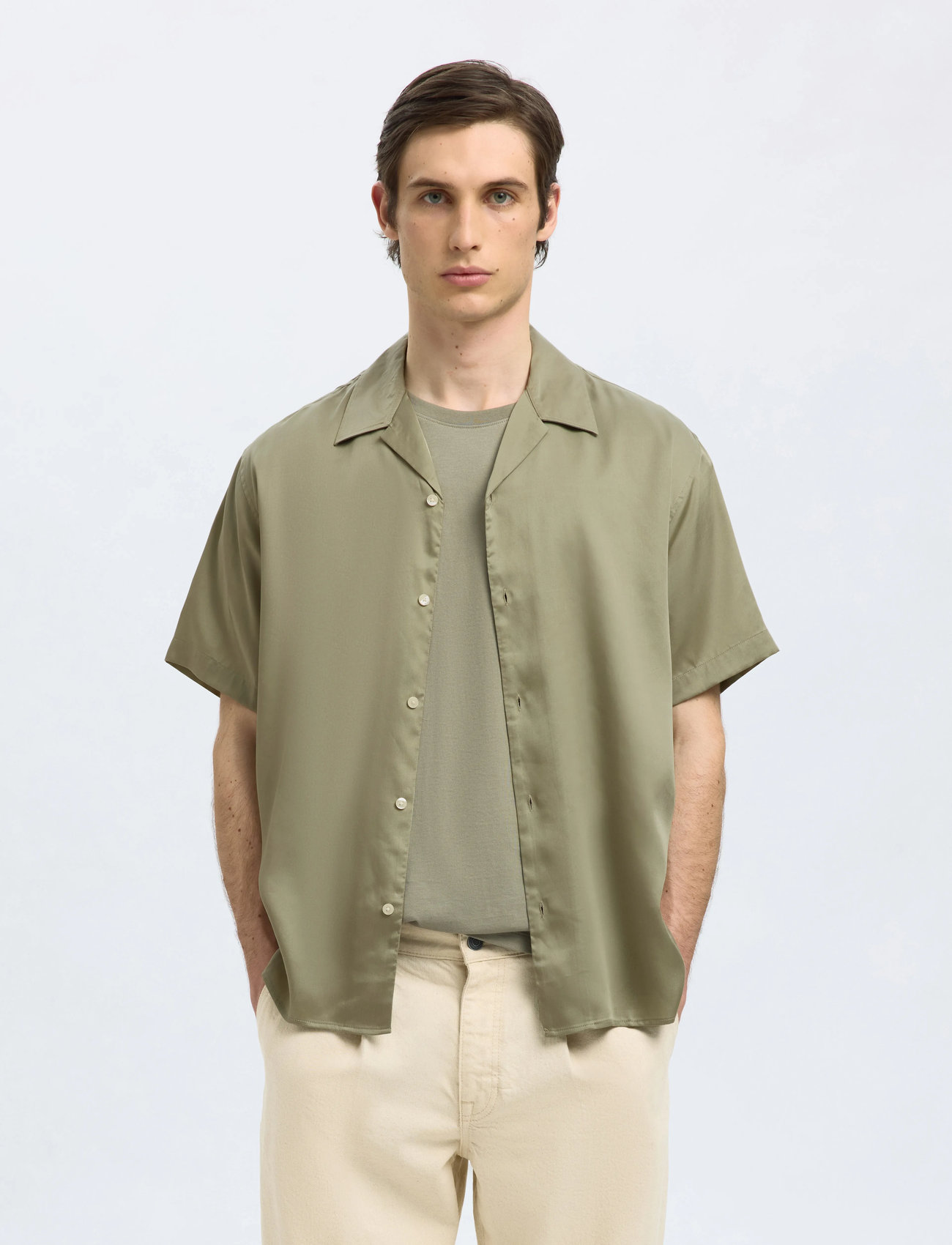 Selected Slhrlxcharlie Satin Ss Shirt Resort - Green - XL