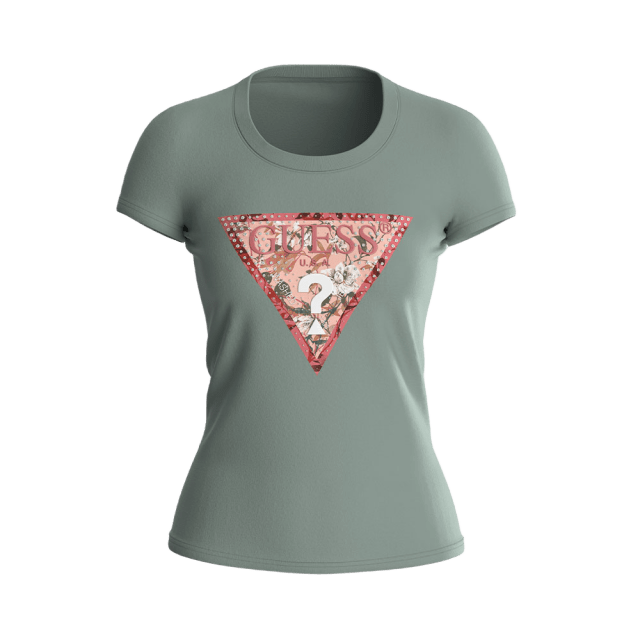 Guess Ss Rn Satin Triangle T-shirt Grön