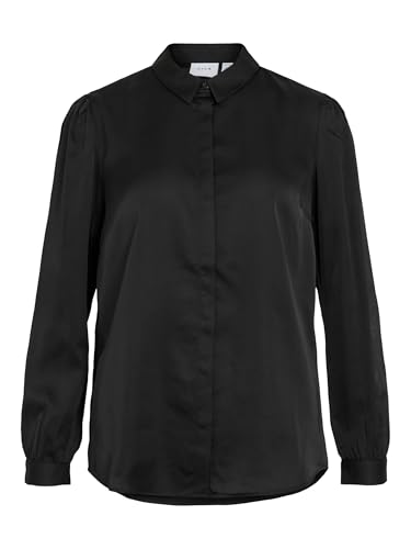 Vila dam Viellette Satin L/S Shirt/Su-Noos blus, svart, 44