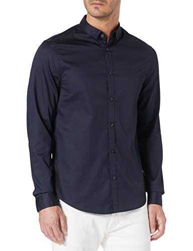 Armani Exchange Herr satin bomull poplin marinblå skjorta