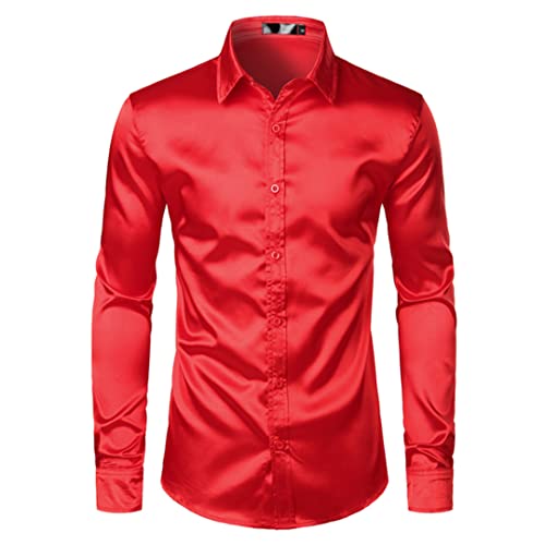 Lmtossey Royal Silk Satin skjorta herr slim fit klänning skjorta, Röd, XL
