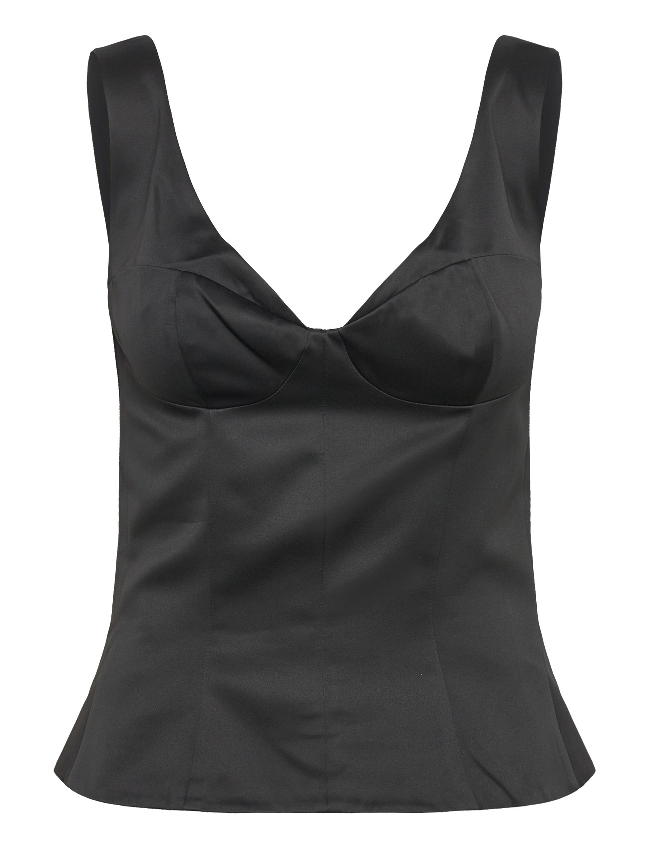 ROTATE Birger Christensen Satin Fitted Top - Black - 40