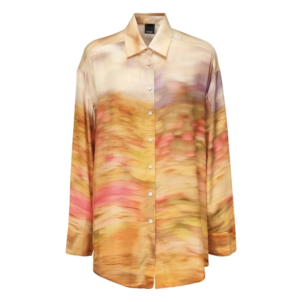 Pinko, Blusar & Skjortor , Dam, L, Satinblus med landskapsmönster