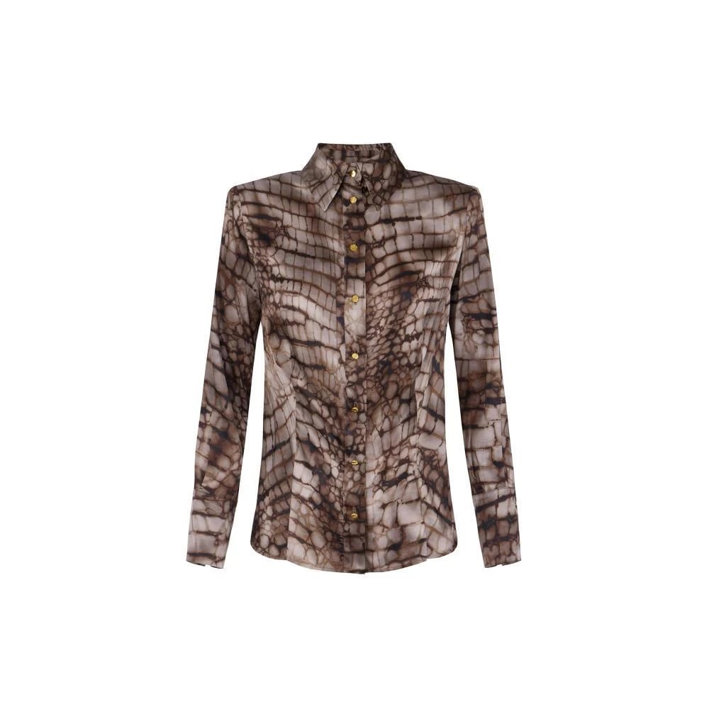 Elisabetta Franchi, Blusar & Skjortor , Dam, M, Satinblus med alligatorprint