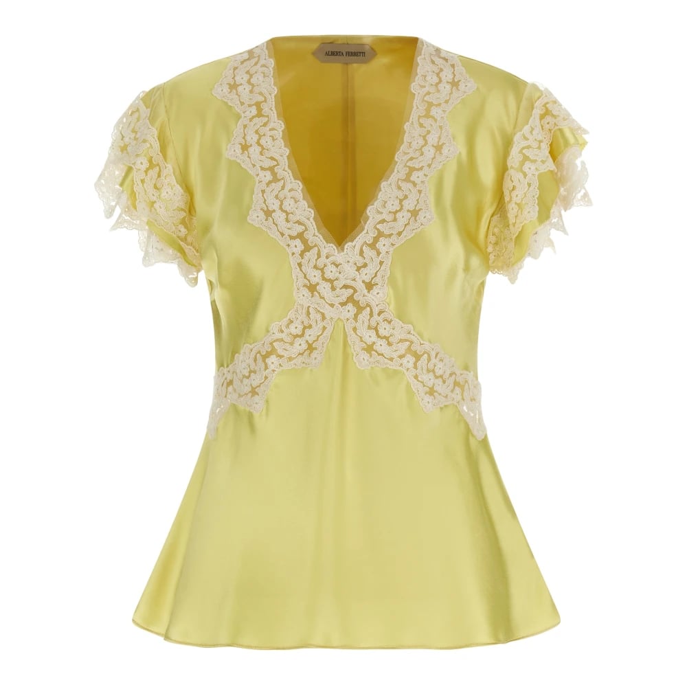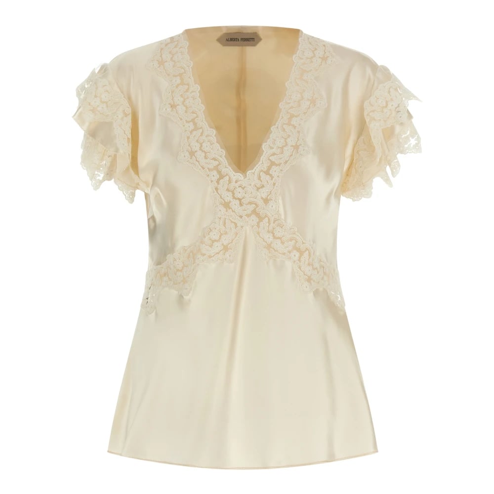 Alberta Ferretti, Blusar & Skjortor , Dam, S, Satinblus med spetsinfällningar