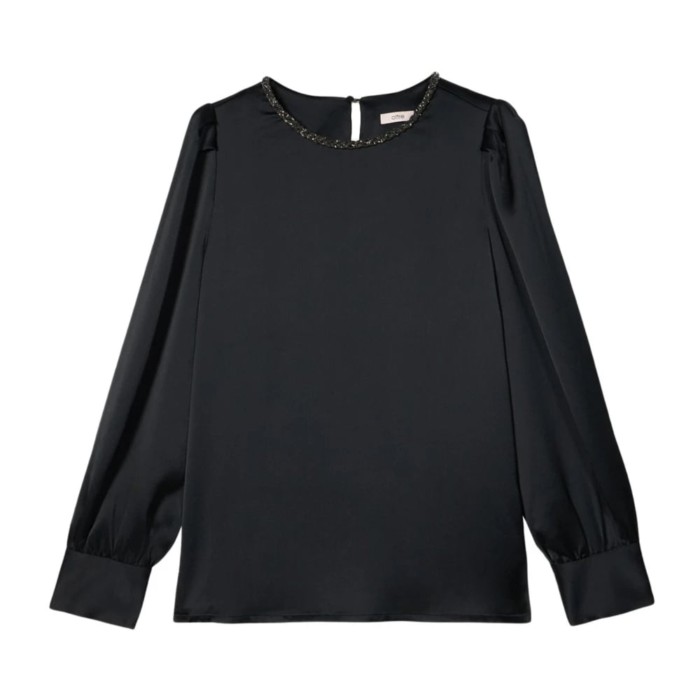Oltre, Blusar & Skjortor , Dam, M, Polyester, Satinblus med juveldetaljer
