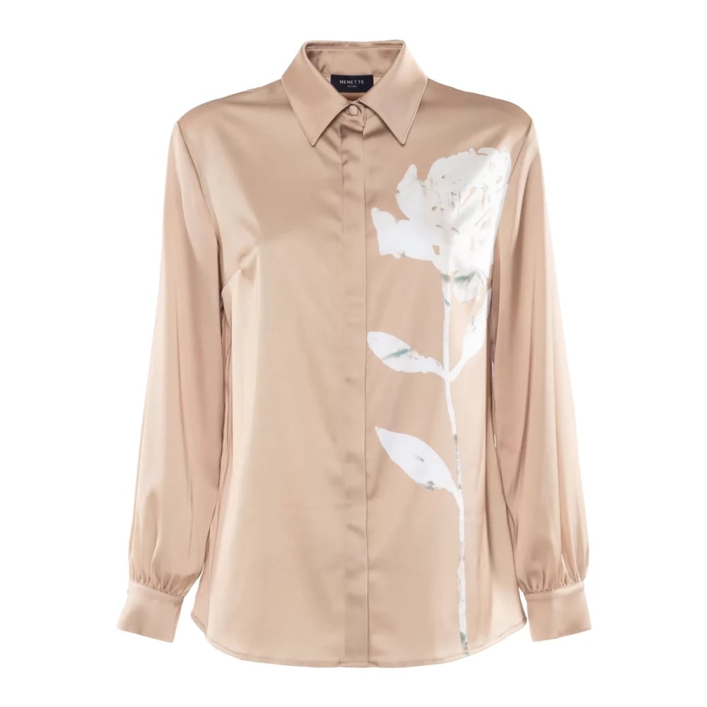 Nenette, Blusar & Skjortor , Dam, M, Polyester, Satinblus med Makroblomstermönster