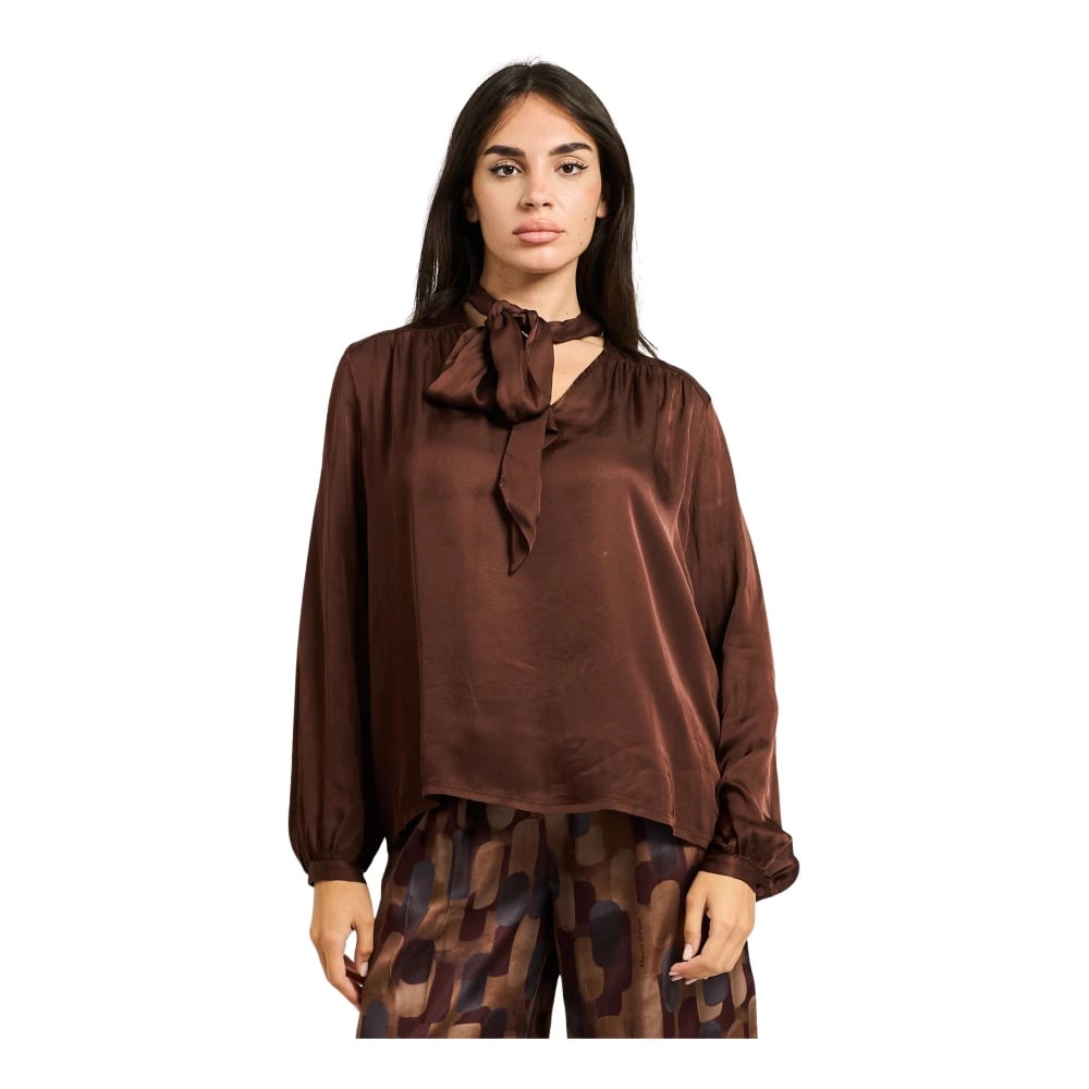 Manila Grace, Blusar & Skjortor , Dam, XS, Satinblus med rosett