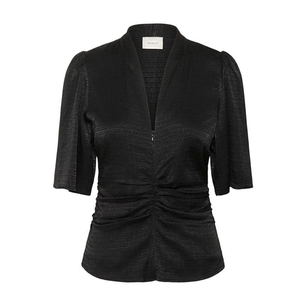 Gestuz, Blusar & Skjortor , Dam, XS, Svart Satinblus med V-ringning