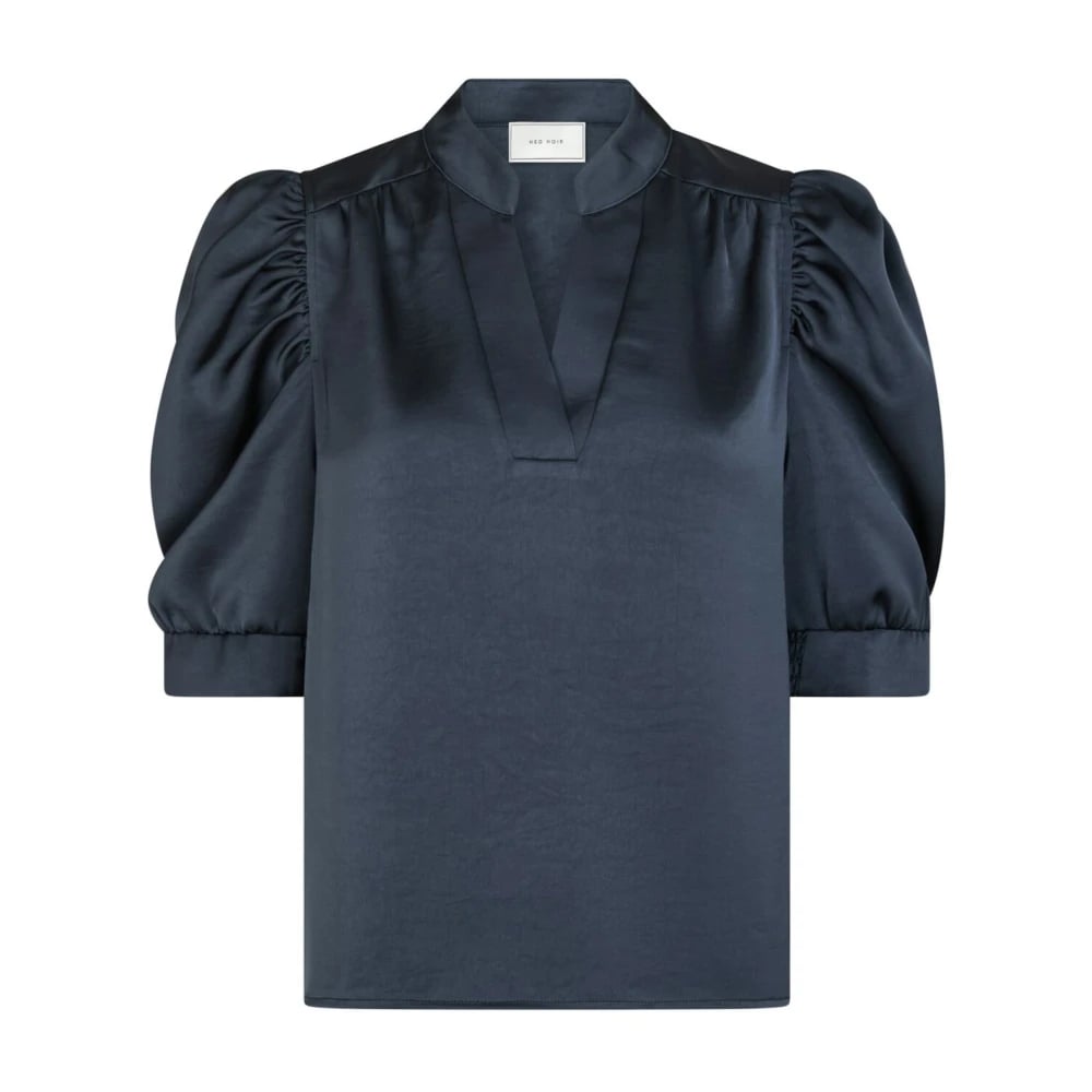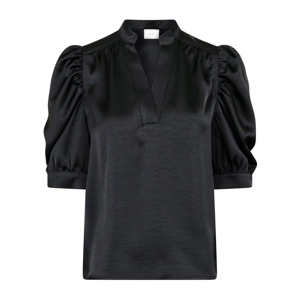 Neo Noir, Blusar & Skjortor , Dam, M, Polyester, Svart Satinblus med Puffärmar