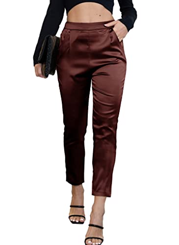 heipeiwa Dam satinbyxor klänning vardaglig veckad dra på hög midja byxor baggy front avsmalnande byxor, Drape Brownclassic, M