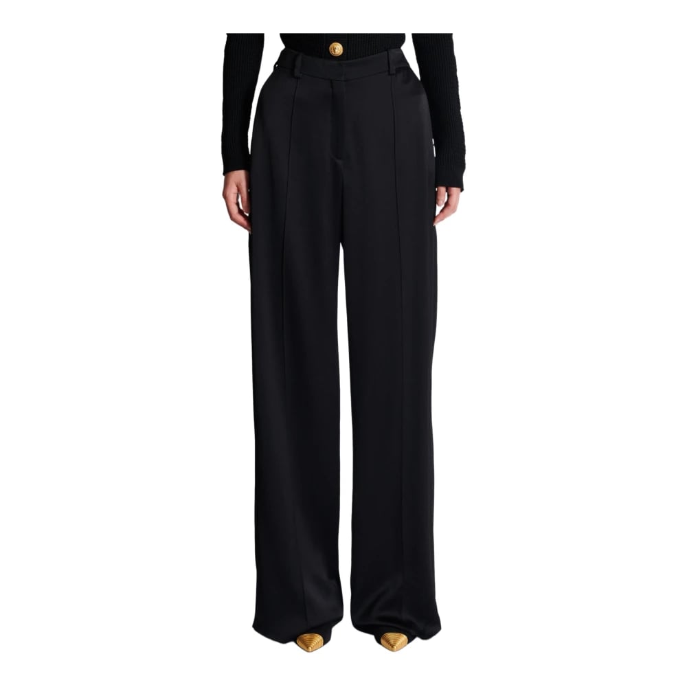 Balmain, Byxor , Dam, 2Xs, Skräddarsydda satinbyxor med raka ben