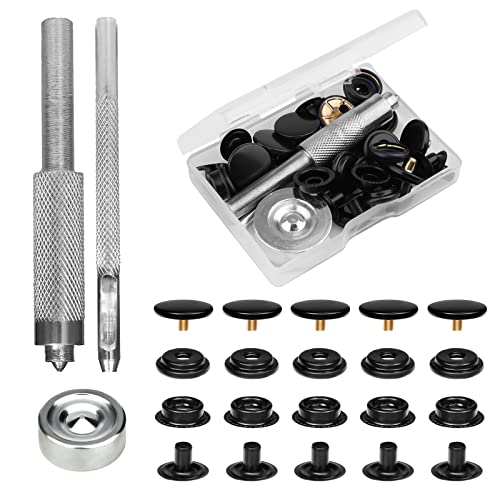 SAVITA 43st Snäppfästen Sats med Setter Base Hollow Punch Tool Snap Button Kit Heavy Duty Metall Knappar Snaps för Kläder Utan Sömnad Snaps för Läder Jackor Jeans Handväskor (Svart)