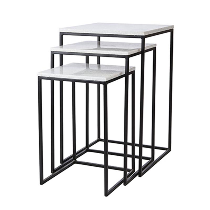 Satsbord 3-delar - Soffbord/Sidebord - Marmorlook, Stålstomme, Platsbesparande - Vit