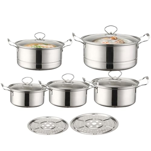 Nonstick Cooking Pot Set, Professional Saucepan Kit with Lids for Stewing and Steaming, rostfritt stål, enkelt rent, matlagning för stove eller restaurang, 1 set