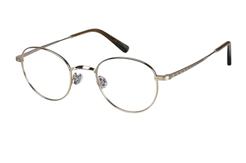 Savile Row runda titanglasögon i guld för unisex, glasögon med synstyrka, tillval med solglasögon nyanser eller blåljusfilter (modell SRO-014-001)