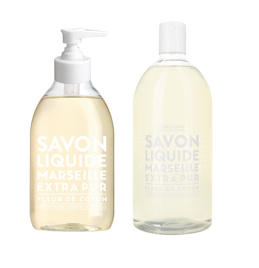 COMPAGNIE DE PROVENCE - Liquid Marseille Soap Cotton Flower 300 ml + COMPAGNIE DE PROVENCE - Liquid Marseille Soap Cotton Flower Refill 1000 ml