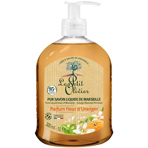 LE PETIT OLIVIER - Set med 12 - ren flytande tvål från Marseille - Fleur D'Oranger Parfym De La Region De Grasse - rengör huden försiktigt - 95% av naturligt ursprung - tillverkad i Frankrike - 300