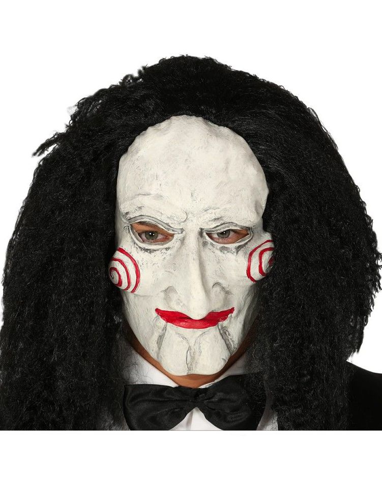 Exklusiv Jigsaw Saw Billy Mask Maskerad Maskeradmask i mjukt material med hår