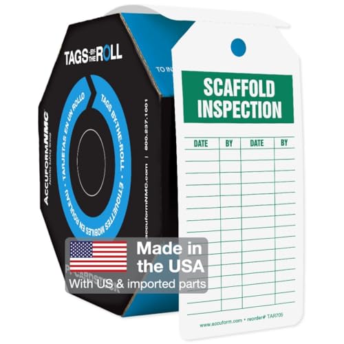 AccuformNMC 100 Tags by-The-Roll, Scaffolding Inspection Tags, US Made OSHA Compliant Scaffold Tags, Waterproof PF-Cardstock, Resists Tears, 6.25"x3", TAR705