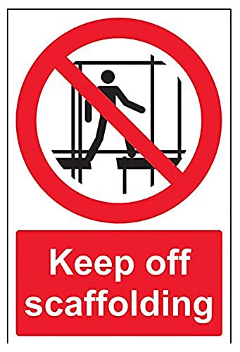 VSafety 52026AU-S"Keep Off Scaffolding" förbjudande åtkomstskylt, självhäftande, porträtt, 200 mm x 300 mm, svart/röd
