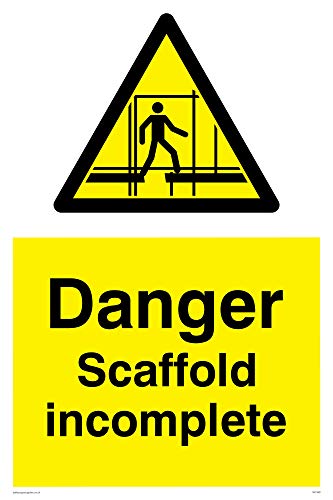 Viking Signs WC499-A4P-3M"Danger Scaffolding Incomplete" skylt, 3 mm styv plast, 300 mm H x 200 mm B