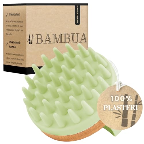 BAMBUA Hårbottens Massageborste - (Anti-Skäleffekt) Huvudmassageborste - För Hårbottenmassage under Duschning - Premium Hårbottensmassör - Inkl. E-bok "Frisk Hårbotten" (Grön)
