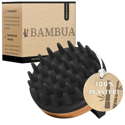 BAMBUA Hårbottens Massageborste - (Anti-Skäleffekt) Huvudmassageborste - För Hårbottenmassage under Duschning - Premium Hårbottensmassör - Inkl. E-bok "Frisk Hårbotten" (Svart)