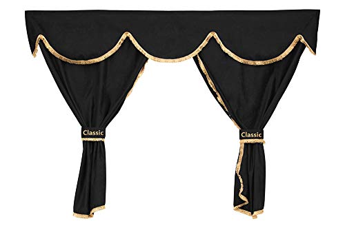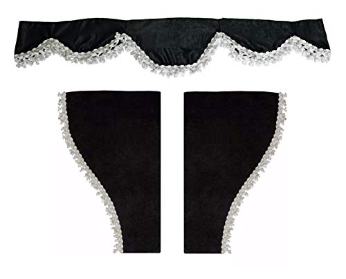 VNVIS Set med 3 dekorativa plyschgardiner med vita tofsar för Scania R S P L lastbilar (svart)