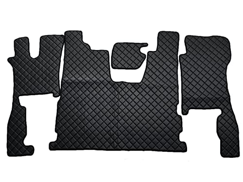 24/7 AUTO Svart med röda sömmar Eco läder golvmattor + motorskydd för nästa gen Scania R 2016 vänsterstyrda lastbilar