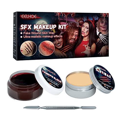 Halloween Scar Wax Fake Blood Gel Kit Makeup Hudvax Special Effects Halloween Scen Fake Wound Forming Scar with Spatel, Special Effects SFX Halloween Makeup Kit (A)