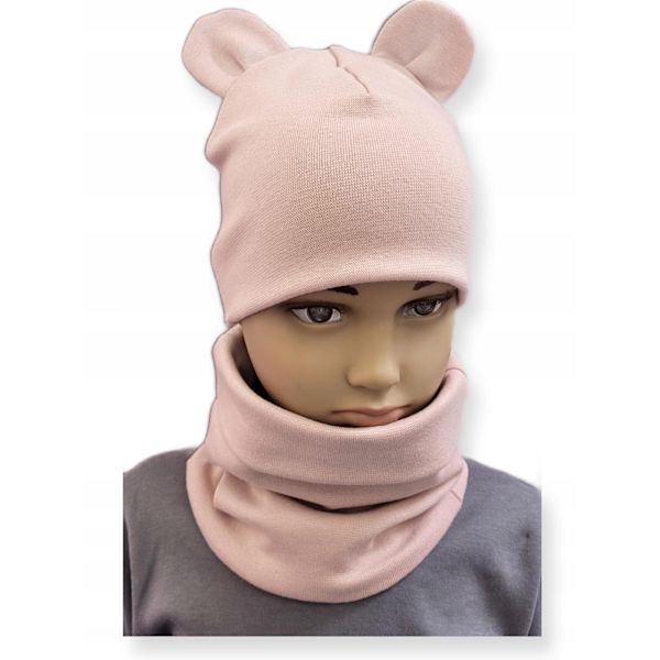 Set Hatt + Scarf 74-80-86 för barn med öron 40-44 Puderrosa
